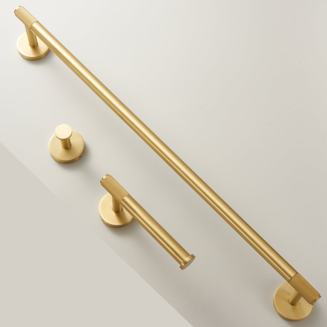 De handdoekhouder maakt deel uit van onze serie badkameraccessoires in messing en kan perfect worden gecombineerd met een bijpassende haak en toilettenrolhouder voor een harmonieus en stijlvol geheel.