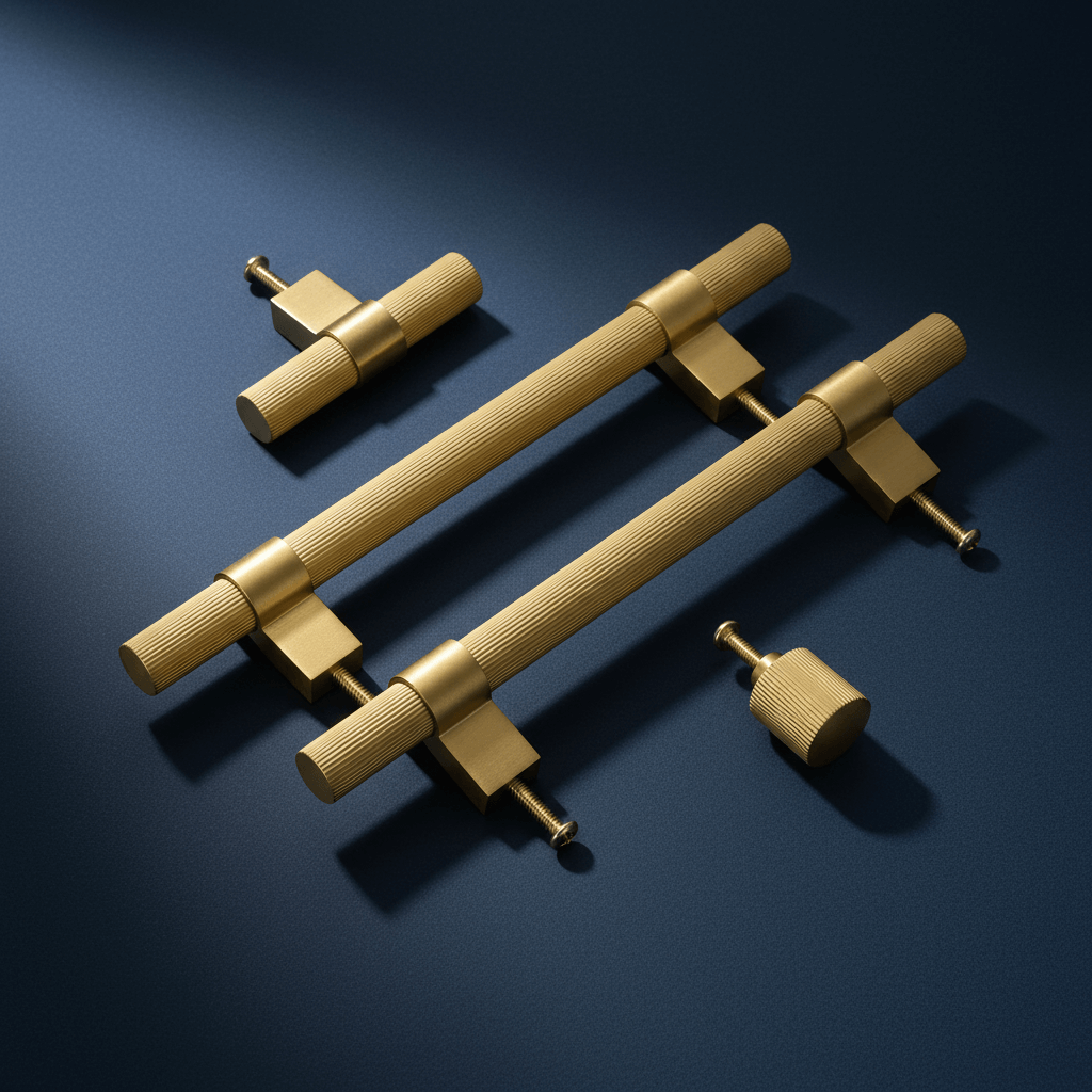 Messing handgreep voor keukendeuren of meubels van massief messing in gegroefd industrieel design. Stijlvol handvat dat over de gehele lengte van het handvat is bekleed met een vierkante bevestigingsplaat in geborstelde afwerking. Past goed in... Lees verder