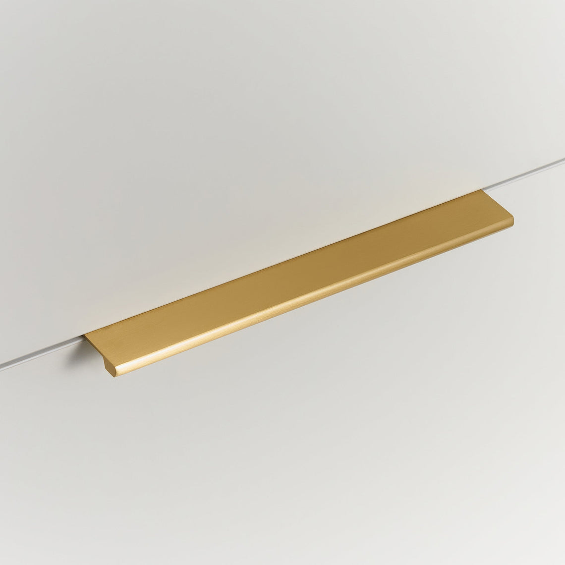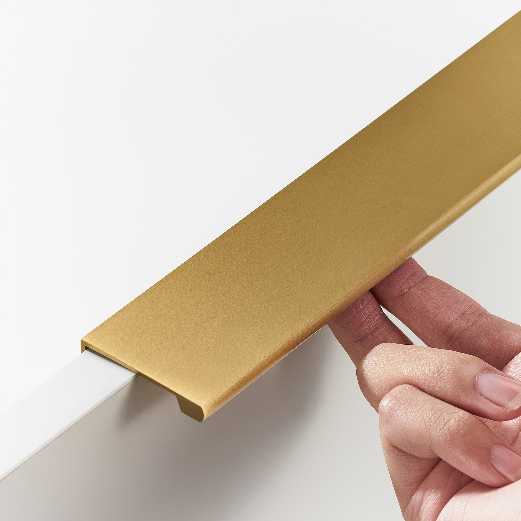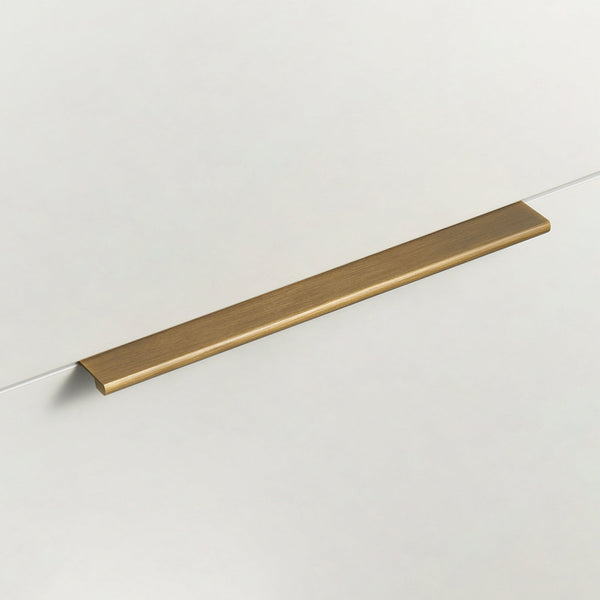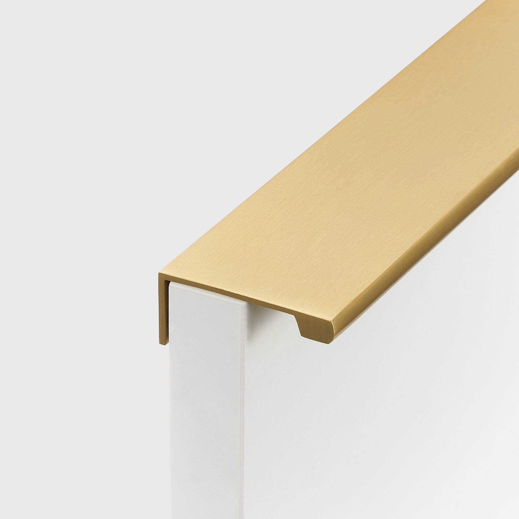 Mosiężny uchwyt w profilu z szczotkowanym wykończeniem. Prosty i nowoczesny design, który pasuje zarówno do frontów kuchennych, jak i do nowoczesnych mebli w przedpokoju. Dzięki sprytnemu mocowaniu od tylnej strony frontu nie jest wymagana żadna widoczna perforacja, co nie tylko zachowuje oryginalną powierzchnię frontu, ale także umożliwia przyszłą wymianę uchwytów bez widocznych otworów. Szczotkowane wykończenie dodaje ekskluzywnego charakteru i przyczynia się do trwałego, wyrafinowanego stylu w domu.