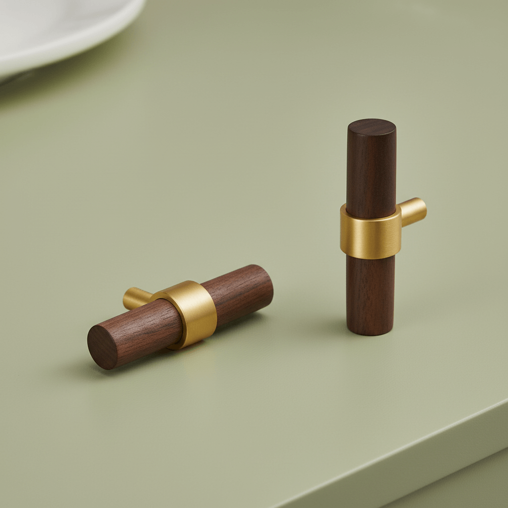 Ta T-bar z drewna orzecha emanuje ciepłem i dodaje naturalnego charakteru Twojemu wnętrzu. Dzięki ponadczasowemu designowi oraz mocowaniom z litego mosiądzu, Twoja kuchnia lub meble zyskają elegancki i ekskluzywny akcent. W naszej ofercie znajdują się... Czytaj więcej