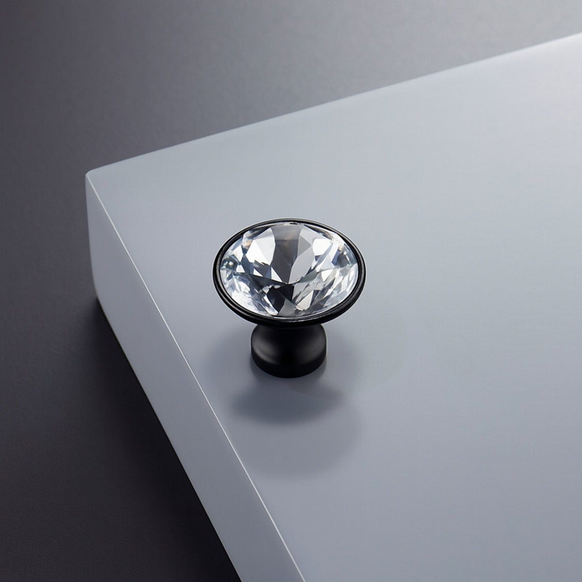 Elegant svart knopp med en infälld sten i artificiell kristall (kvarts) som ger en unik och lyxig touch. Denna dekorativa knopp är idealisk för att förhöja stilen på antika möbler och byråer, och passar även utmärkt på byråer i Shabby Chic-stil för att skapa en vacker kontrast mellan vintage och modern elegans. Perfekt för dig som vill ge dina möbler en personlig och stilfull uppgradering med en lyxig känsla av ädelstenar.
