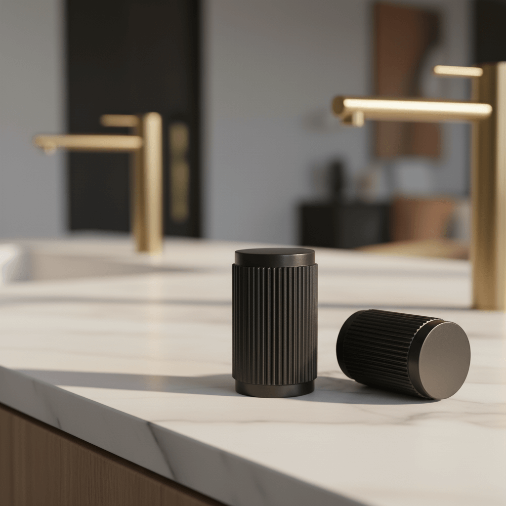 Svart knopp i solid mässing med en kombination av borstad och räfflad yta – en distinkt detalj som gör intryck i rummet. Den mångsidiga designen passar perfekt på köksluckor, sovrumsbyråer eller TV-möbler. För en enhetlig stil, komplettera gärna med de matchande handtagen i serien 3100, som du hittar under "Handtag" i menyn.